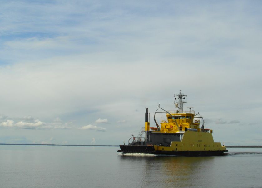 Tu ja w towarzystwie Melanie na wspomnianym wcześniej promie, który jest zaskakująco pojemny! W drodze powrotnej jechała z nami ciężarówka z drewnem z tartaku i autobus oraz kilkanaście aut!