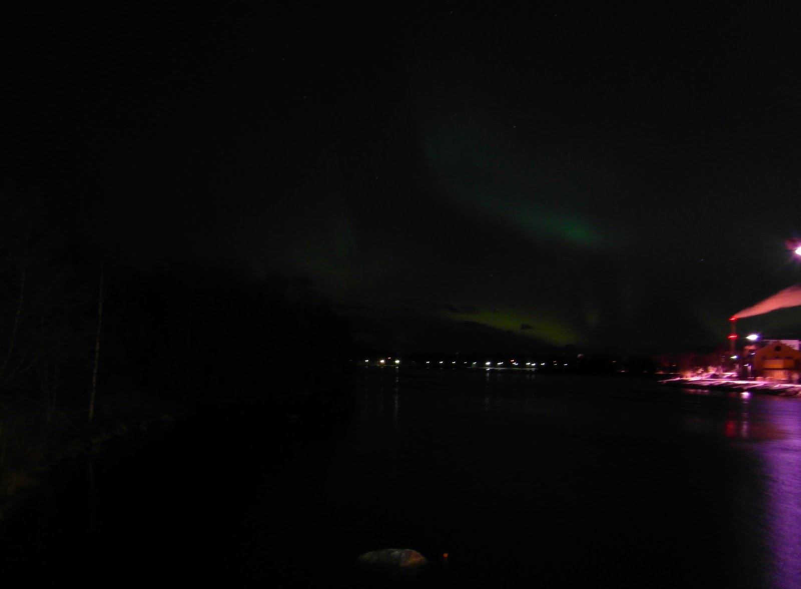 Aktywność zorzy mierzy się w 9-stopniowej skali, gdzie 1 oznacza brak aktywności a 9 prawie nigdy nie osiągalne maksimum. Na dzisiaj zapowiadana była aktywność 4. stopnia, a jako, że ostatnio widziałam zorzę przy stopniu 3. to miałam nadzieję, że dziś uda mi się zrobić kilka zdjęć! Oczywiście wszystko zależy tu też od pogody – jeżeli niebo jest zachmurzone to nic nie widać. Ponadto każdy „polujący” na zorzę polarna musi wiedzieć gdzie jej szukać. Oczywiście im większa aktywność zorzy (a właściwie raczej wybuchów na słońcu) tym łatwiej ją znaleźć. Jednak w miastach generalnie jest ona słabiej widoczna ze względu na rozpraszające widoczność wszechobecne światła. Kiedy jest się na odludziu w Laponii oczywiście sprawa jest dużo łatwiejsza 🙂 W każdym razie śledziłam doniesienia o aktywności zorzy i prognozy pogody bardzo uważnie co zaowocowało nagrodą w postaci pierwszych porządnych (powiedzmy…) zdjęć 🙂 Oczywiście mój aparat nie jest najlepszy w robieniu nocnych zdjęć, zwłaszcza bez statywu, ale i tak bardzo się cieszę z efektów – zapraszam do oglądania!