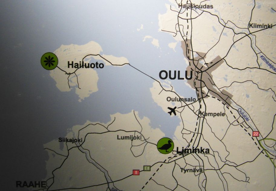 Mapa pokazująca okolice Oulu. Widać moją ukochaną wystpę Hailuoto, Liminka oraz lotnisko, które odwiedzę już w piętek.