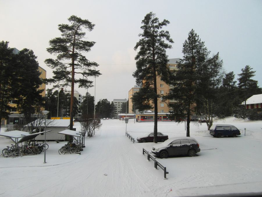 Od kilku dni mamy tutaj w Oulu prawdziwą fińską zimę! Jest dość zimno – pomiędzy -20 a -10 stopni, a gdzie nie spojrzeć wszędzie śnieg 🙂 Na pierwszym zdjęciu widok z mojego okna.