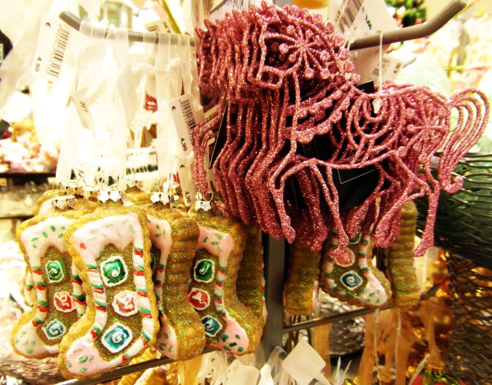 Ponadto oczywiście sklepy pełne są świątecznych znaków 😉 Oto sfotografowana przeze mnie kolekcja ozdób świątecznych wszelkiego sortu. Oczywiście wszystko dość drogie 😉